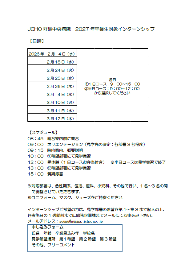 2027年卒業生対象インターンシップ(就業体験)開催のお知らせ