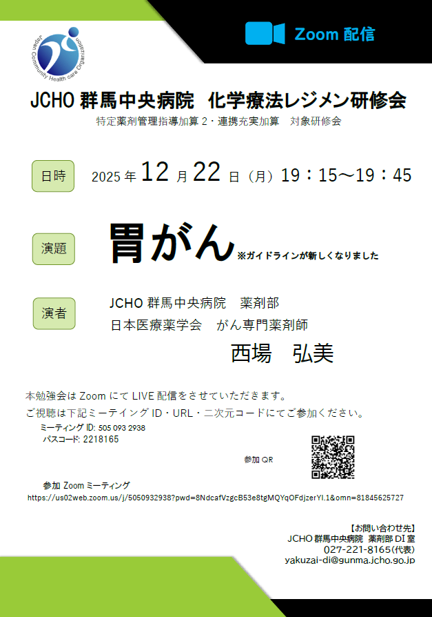JCHO 群馬中央病院 化学療法レジメン研修会