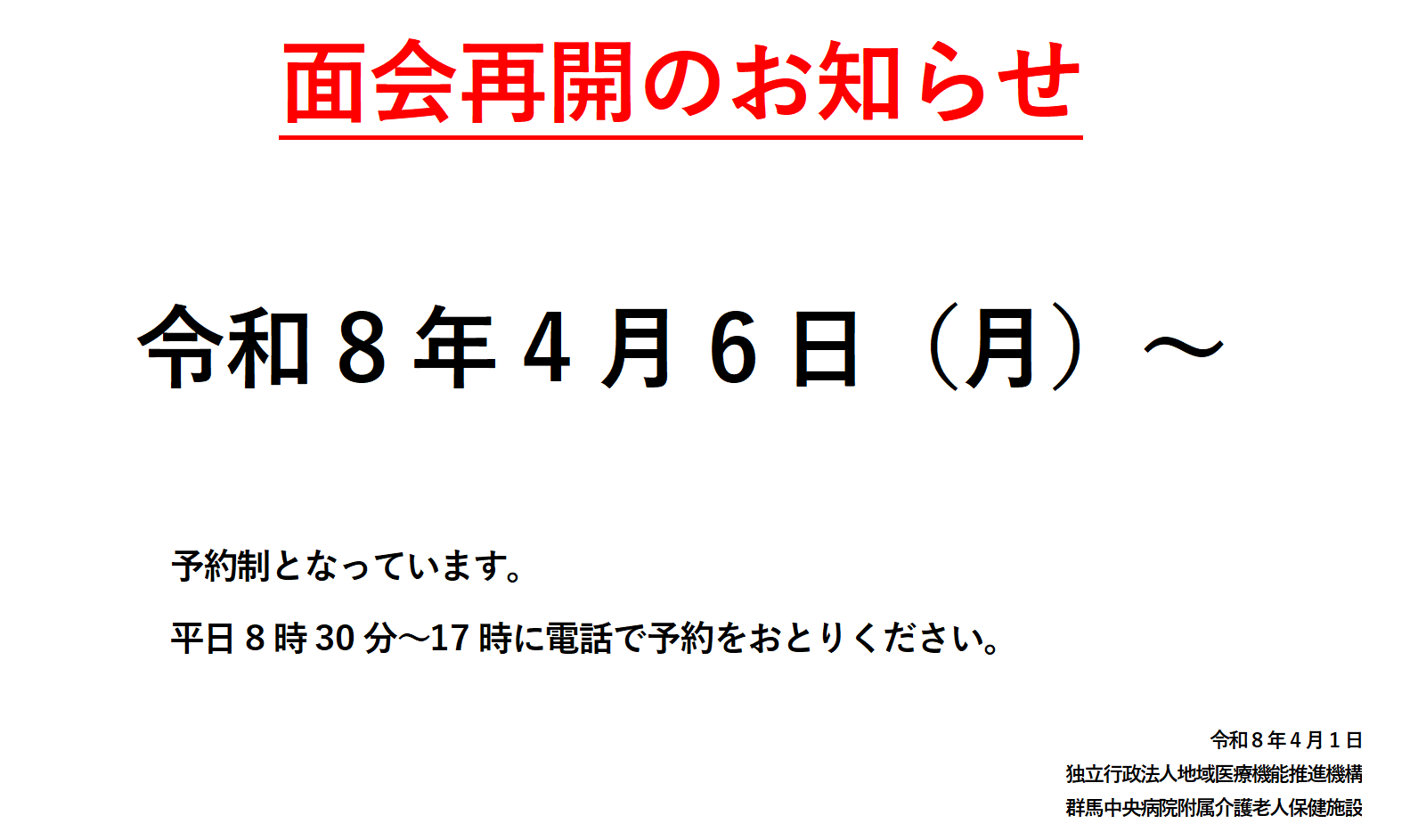 面会再開のお知らせ